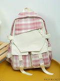 BagForLove - Plaid Graphic Backpack with Letter Patch, Front Pocket - Perfect for School