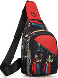 BagForLove - Chic Vintage Mini Sling Bag with Floral & Figure Pattern, Zipper Front Decor - Perfect for Daily Use