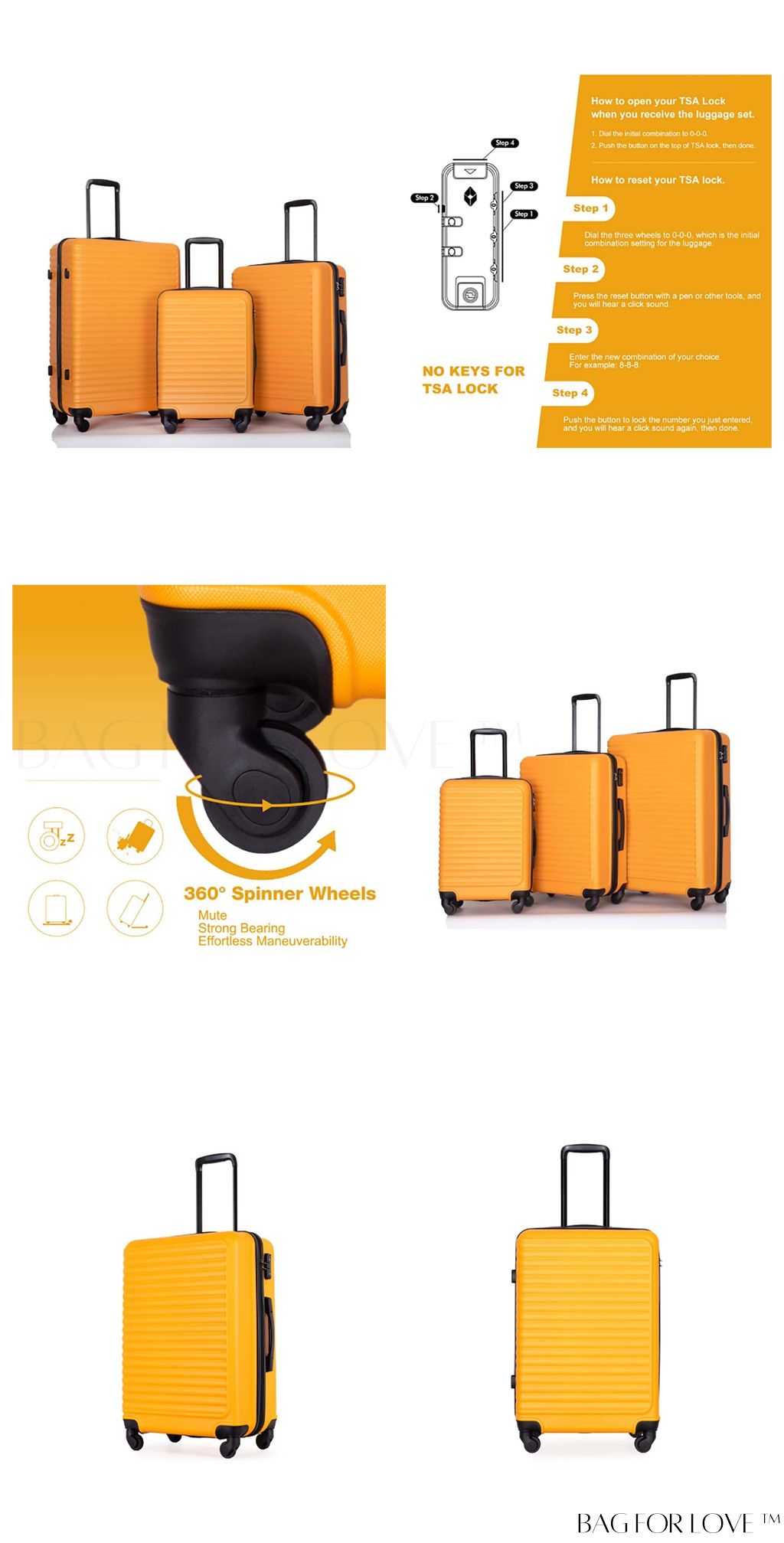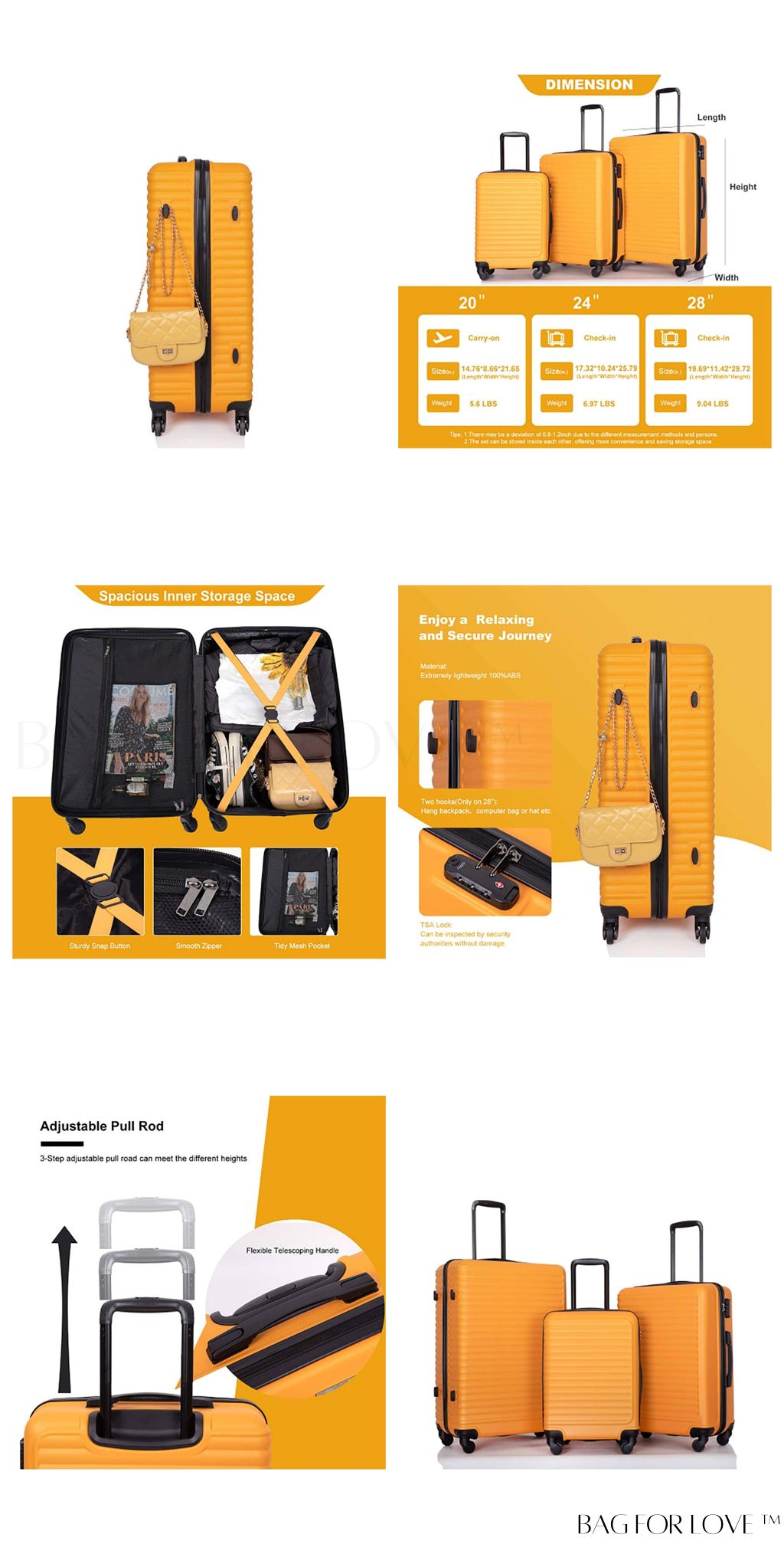 BagForLove - Lightweight 3-Piece ABS Luggage Sets with Hooks - Ideal for Travel and Business (20/24/28in)