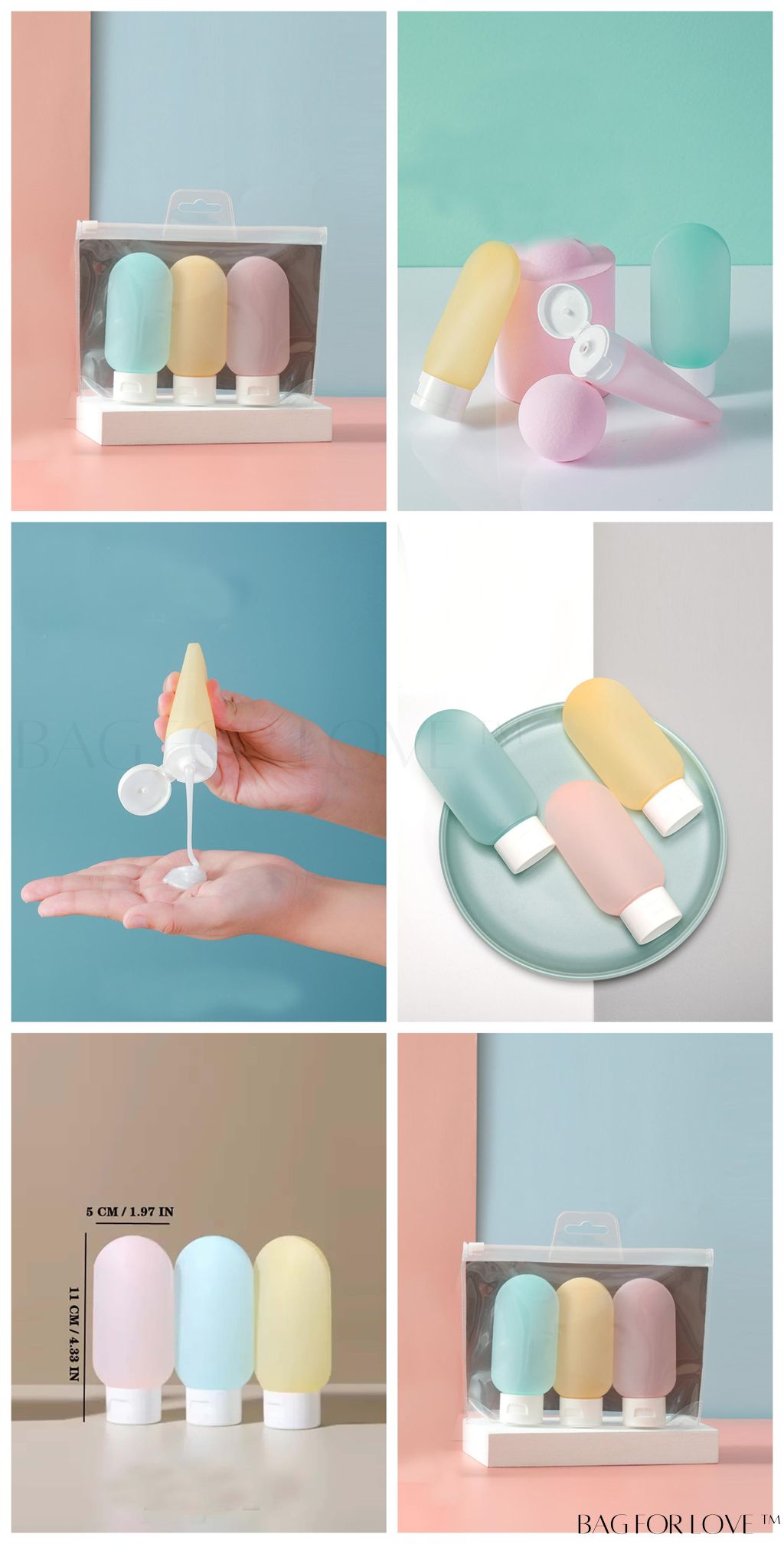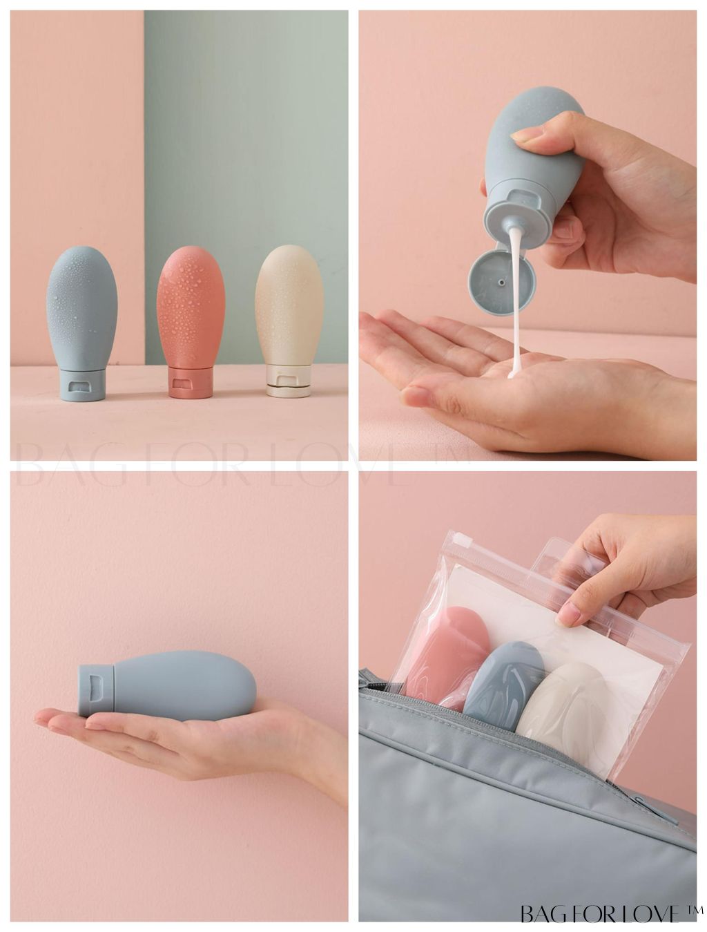 BagForLove - Leak-Proof Silicone Travel Bottles Set for Toiletries and Cosmetics, Refillable and Squeezable