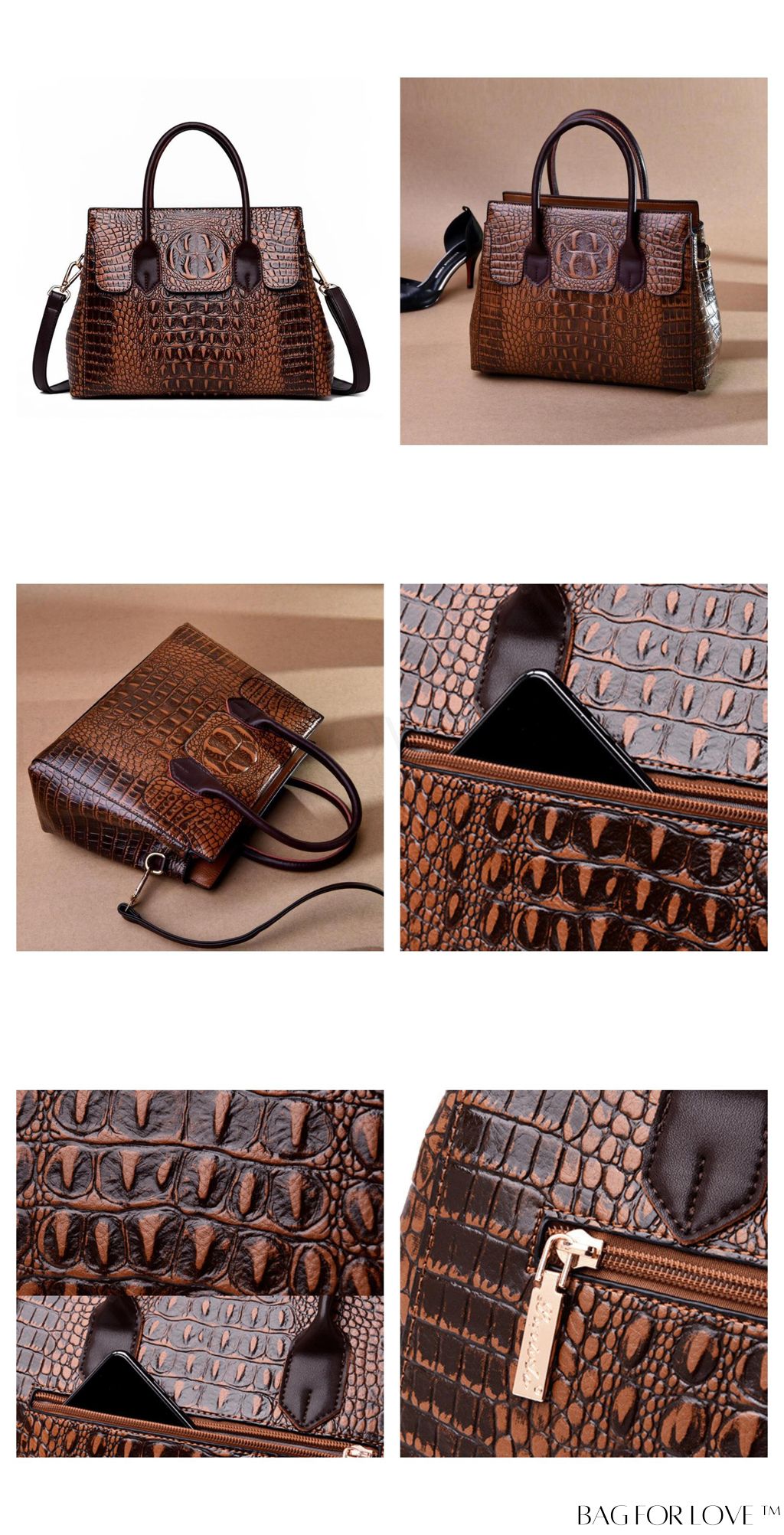 BagForLove - Chic Crocodile Pattern Crossbody Shoulder Handbag for Women - Vintage and Elegant