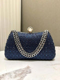 BagForLove - Elegance Defined Navy Blue Double-Sided Rhinestone Clutch Purse with Metallic Chain Handle for Ladies