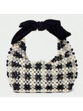 BagForLove - Stylish Beaded Bow Bag with Checkerboard Design