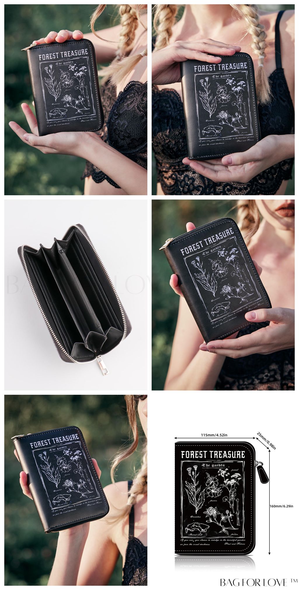 BagForLove - Chic Goth Card Holder with Floral Pattern & Slogan Graphic