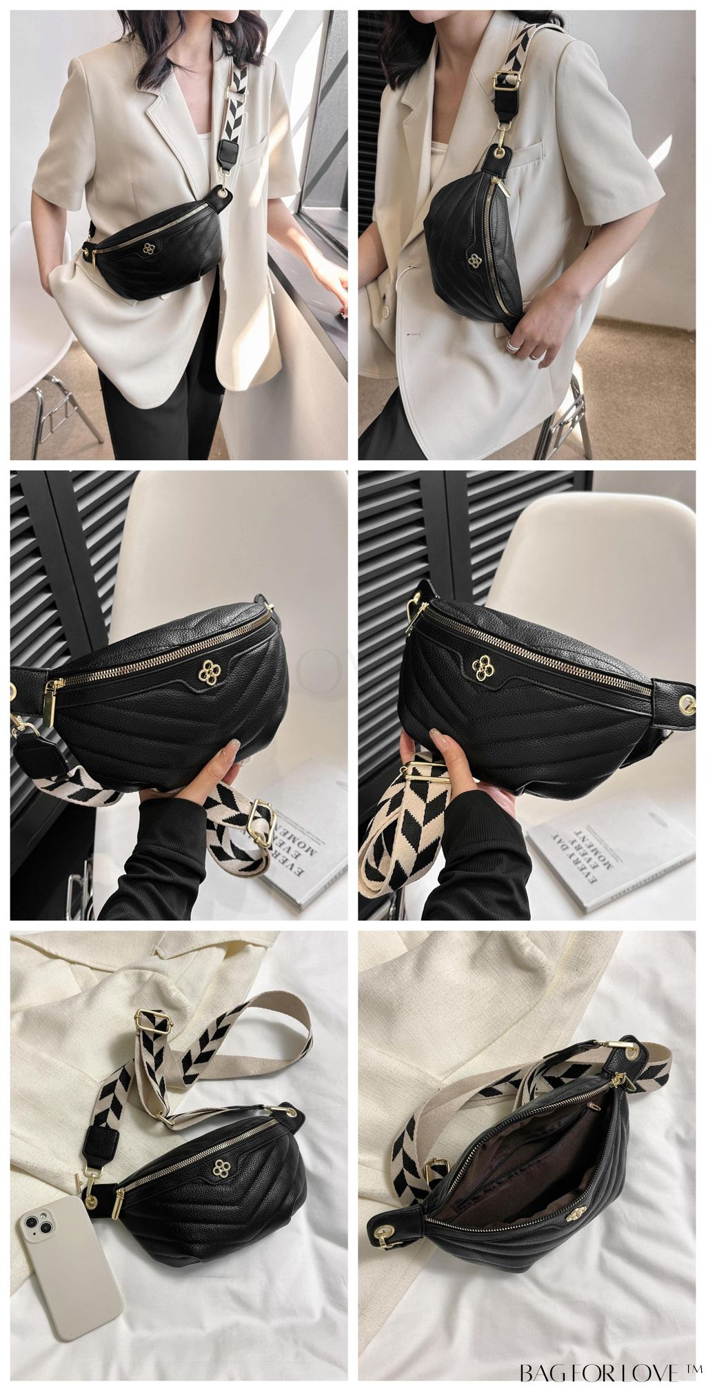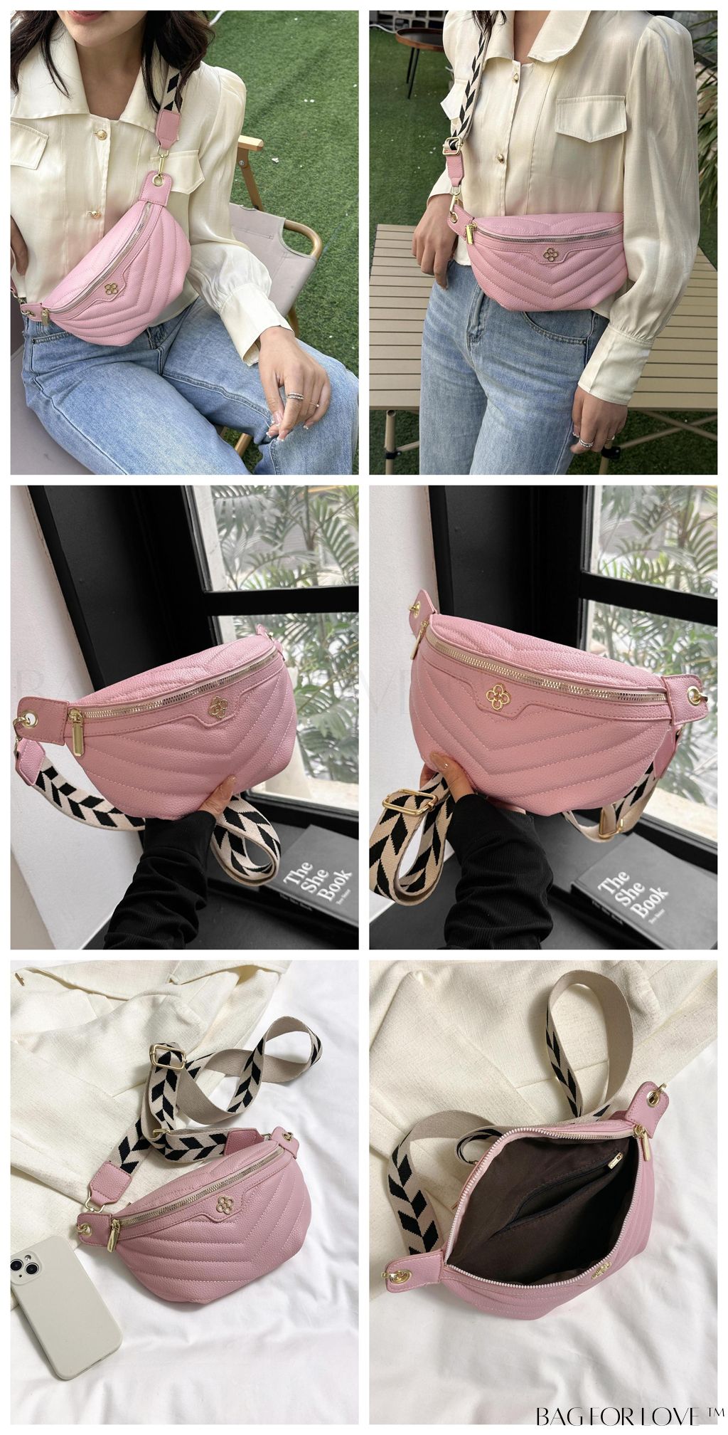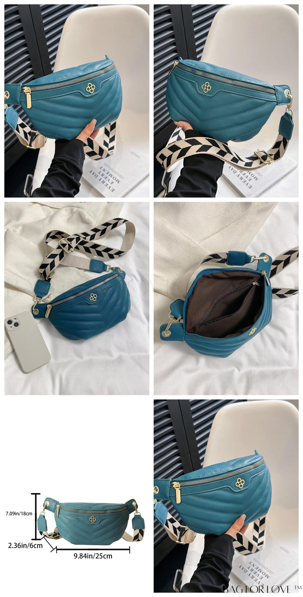 BagForLove - Stylish Metal Accent Chevron Fanny Pack with Zipper - Premium PU Material