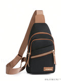 BagForLove - Two-Tone Mini Sling Bag with Zip Front and Letter Patch Decoration