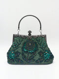 BagForLove - Vintage Glamorous Evening Clutch Bag with Emerald Green Rose Design