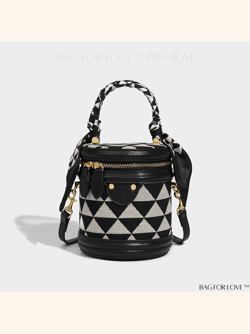 BagForLove - Design triangle lattice retro canvas high quality handbag handbag diamond lattice cylinder bag crossbody handbag female