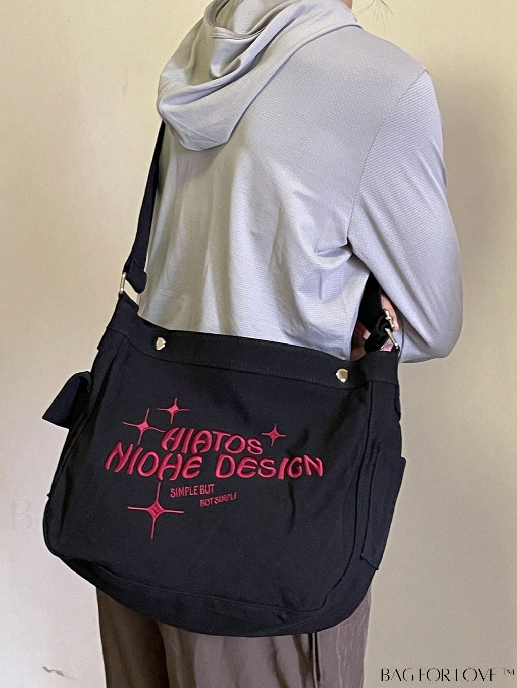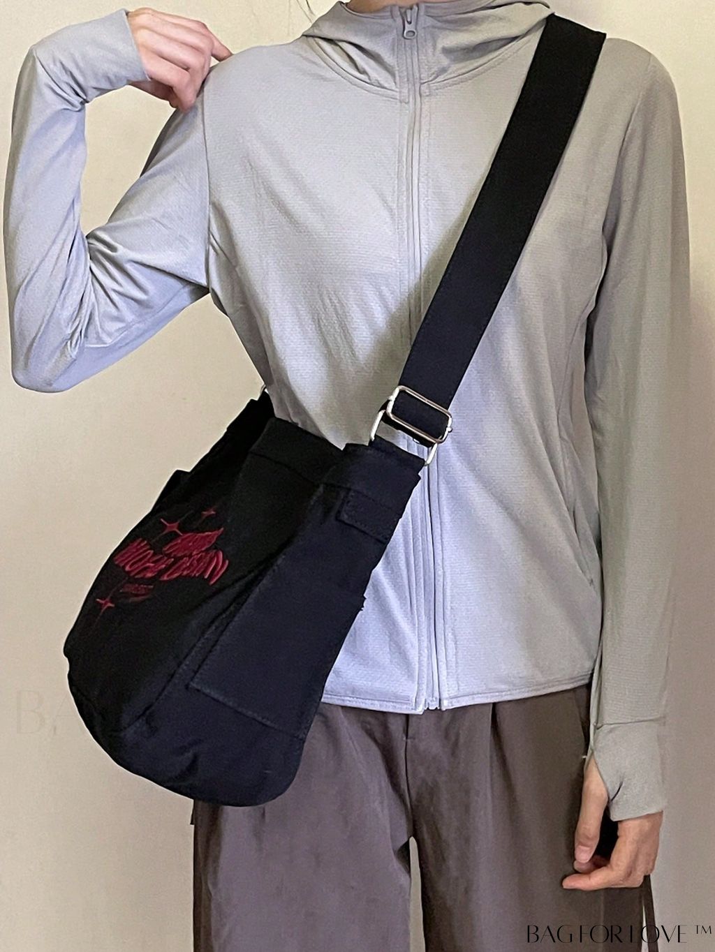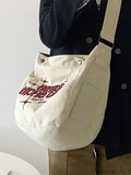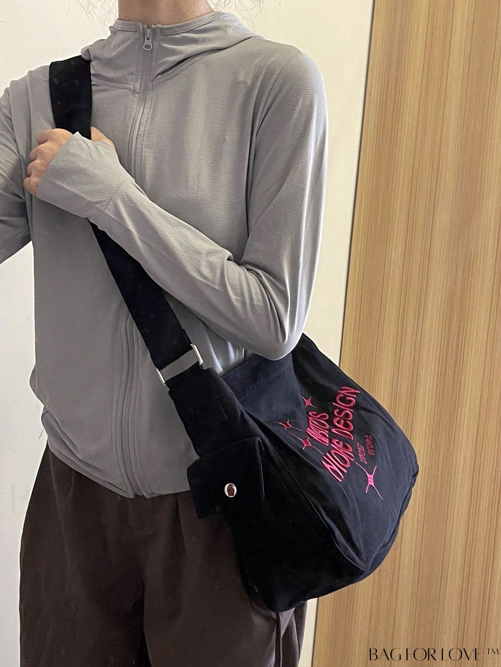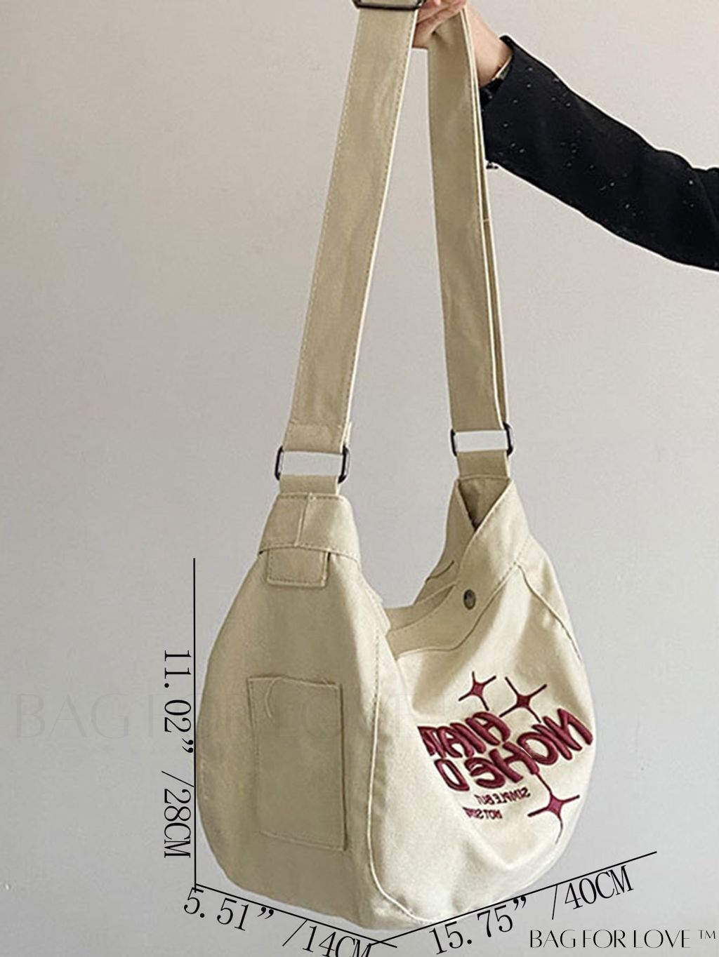 BagForLove - Adjustable Strap Oversized Canvas Hobo Bag with Embroidered Letters
