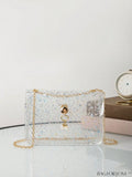 BagForLove - Chic Clear Flap Chain Bag with Star Print - Fashionably Square