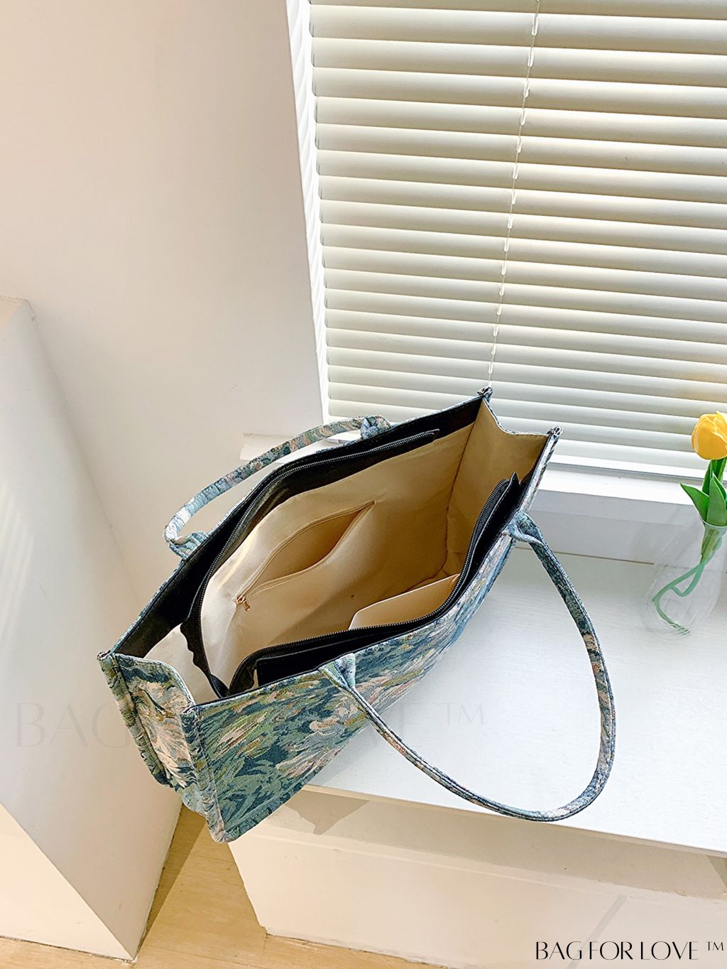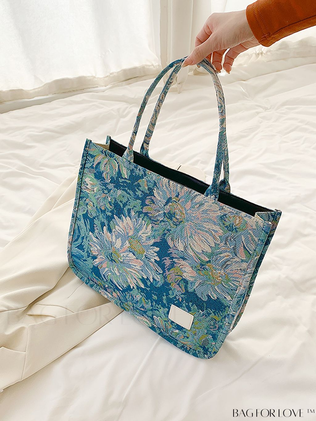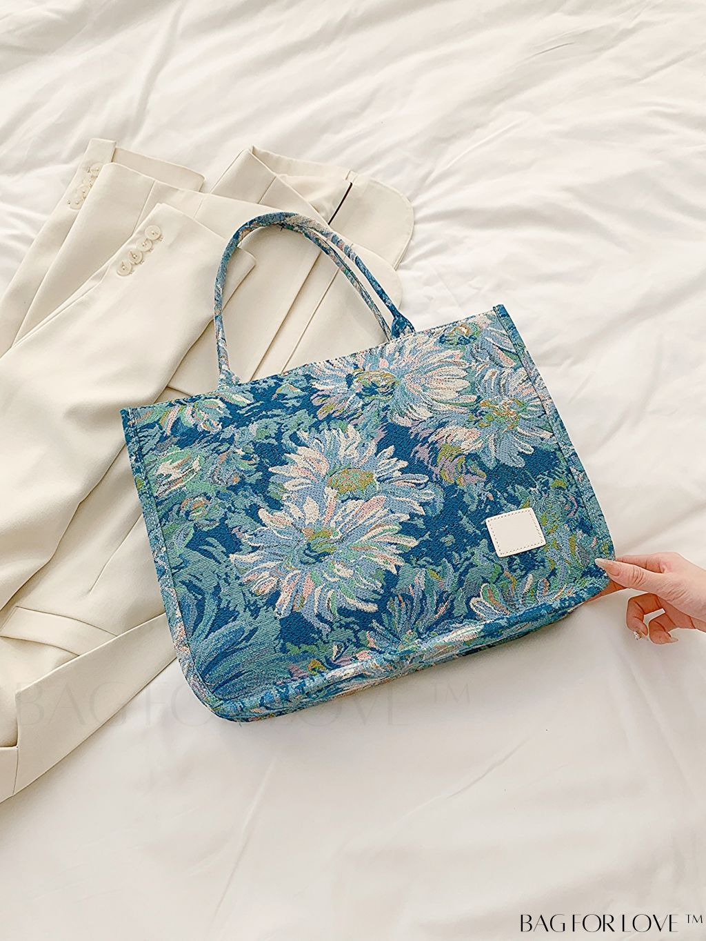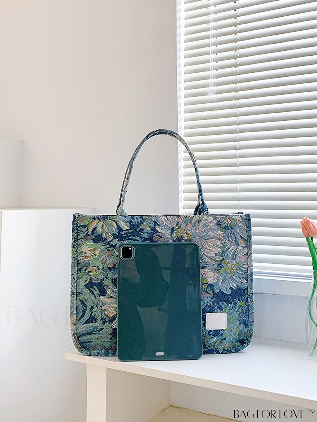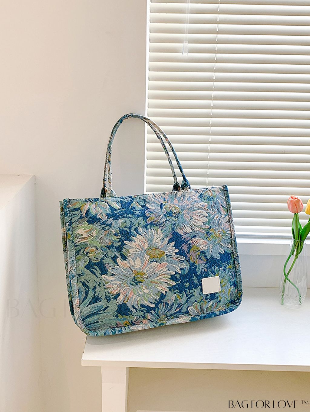 BagForLove - Chic Floral Shopper Bag with Patch Detail