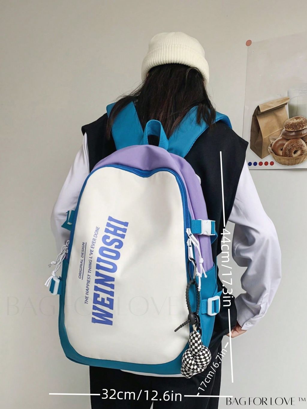 BagForLove - Preppy Colorblock Backpack with Graphic, Bag Charm - Classic and Chic