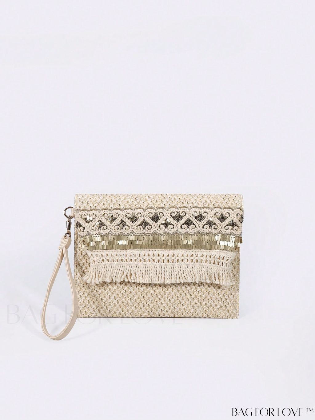 BagForLove - Embroidered Flap Square Bag with Fringe, Sequin, and Decorative Detail