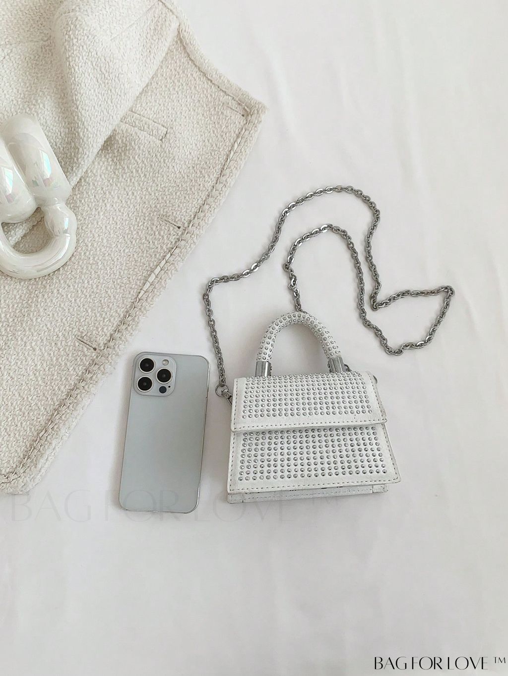 BagForLove - Rhinestone Chain Strap Mini Flap Square Bag with Elegant Decor