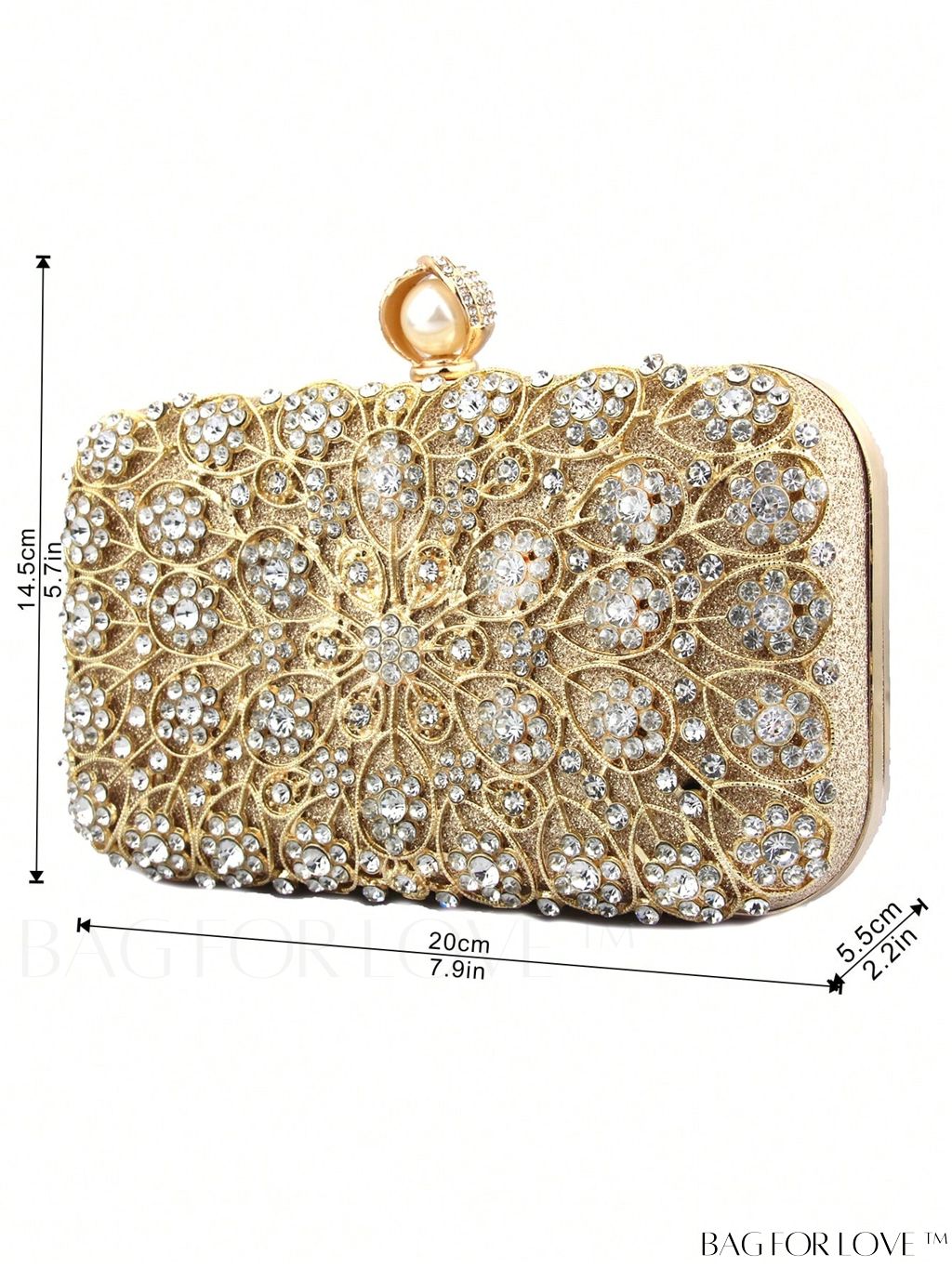 BagForLove - Gold Rhinestone Mini Box Bag with Chain: Elegant Bridal, Wedding, Prom, and Party Purse