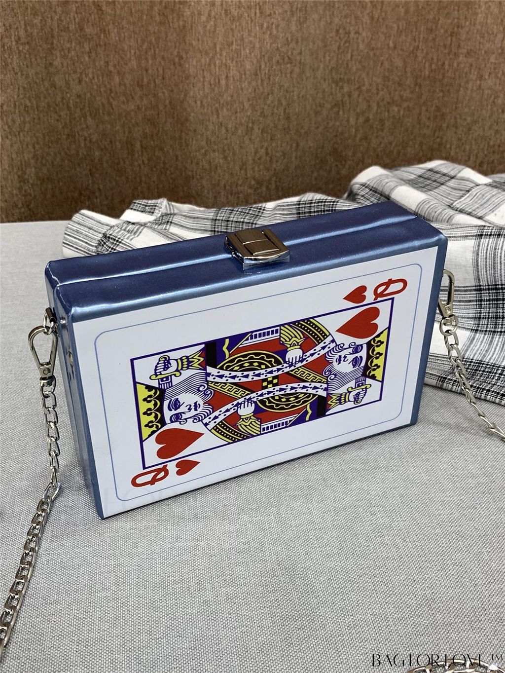 BagForLove - Chic Chain PU Mini Box Bag with Fashionable Playing Card Print