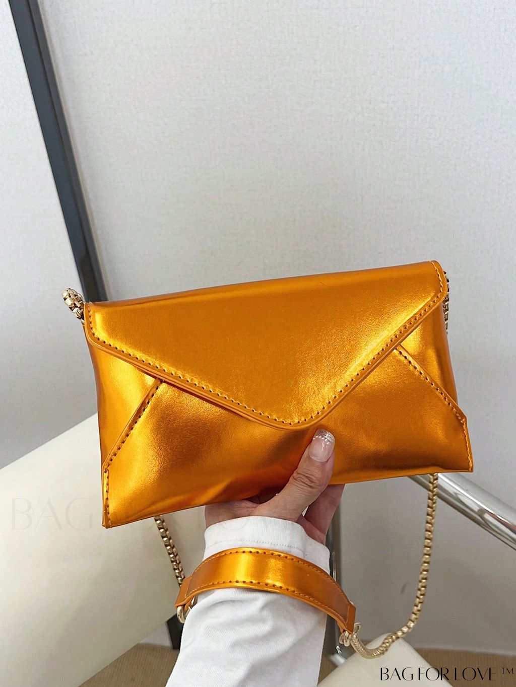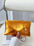 BagForLove - Chic Metallic Chain PU Envelope Bag with Flap Design
