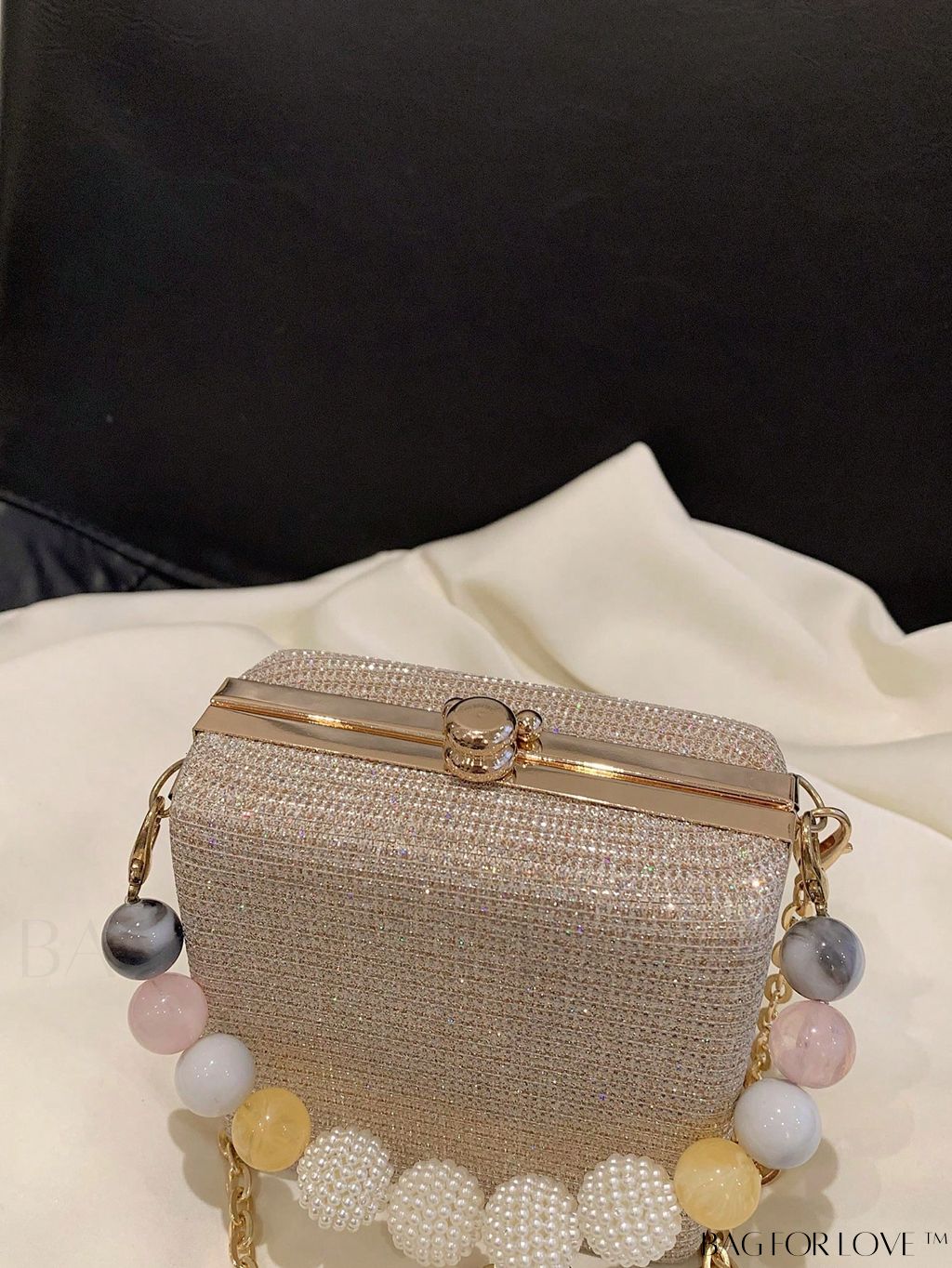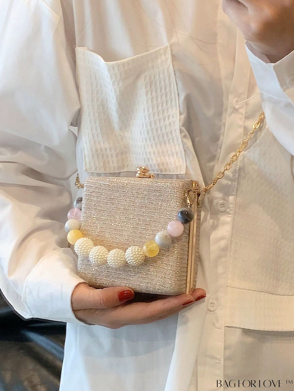 BagForLove - Glamorous Mini Kiss Lock Square Bag with Rhinestone Decor and Chain Strap