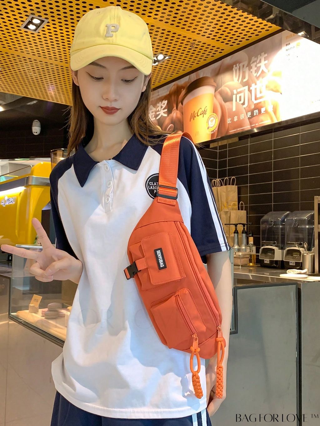 BagForLove - Neon Orange Letter Patch Decor Large Waist Bag - Stylish and Spacious