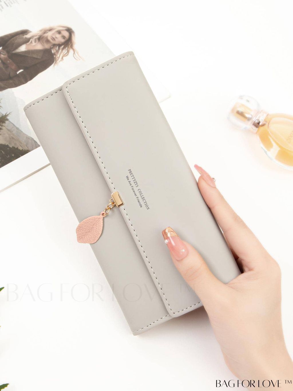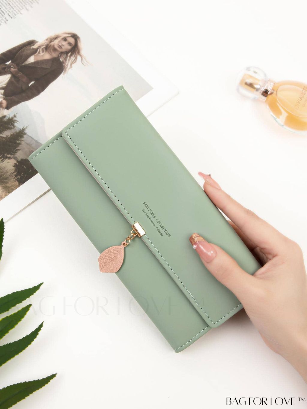 BagForLove - Stylish Leaf Pendant Trifold Pu Long Wallet - Perfect for Summer