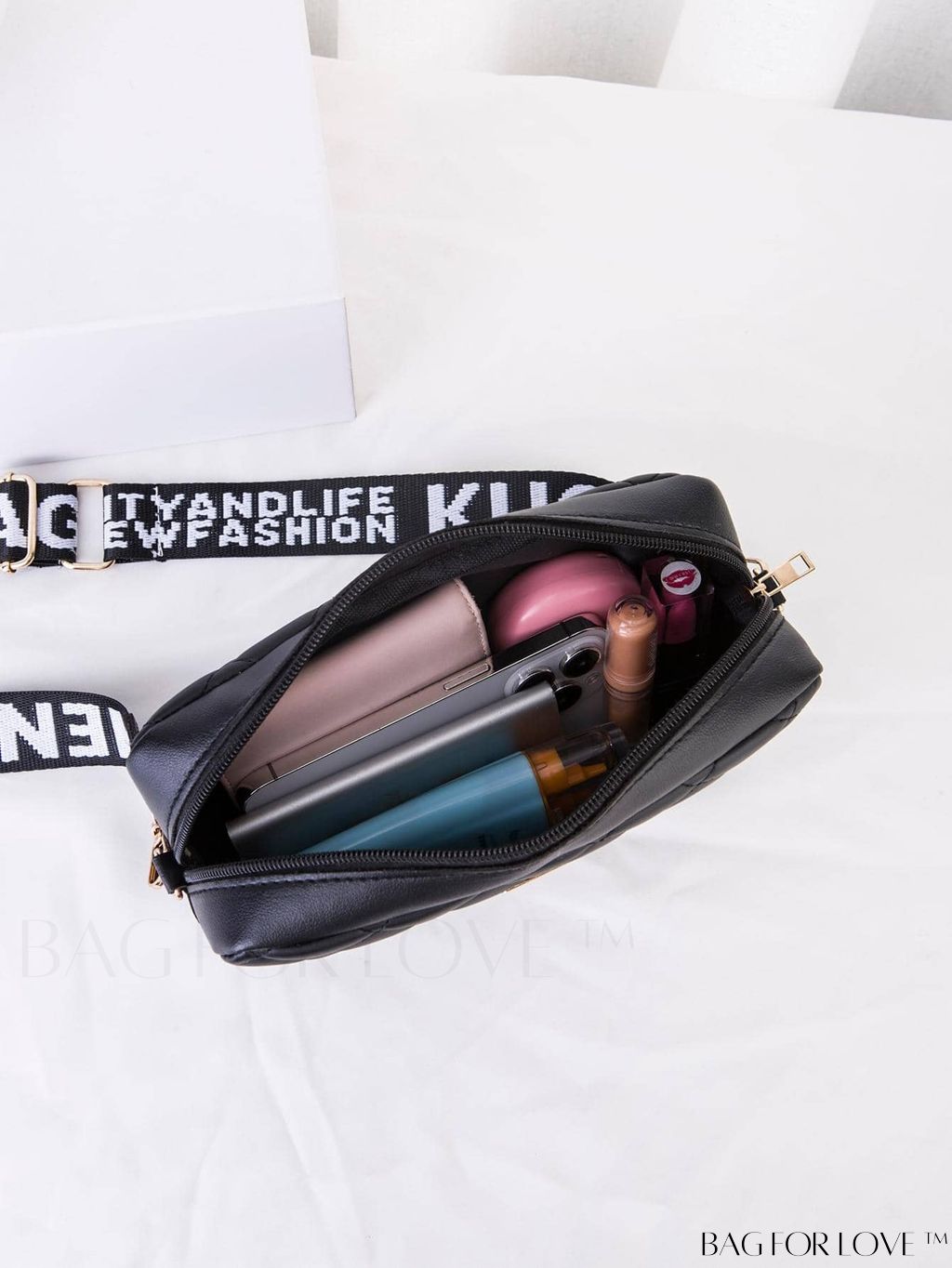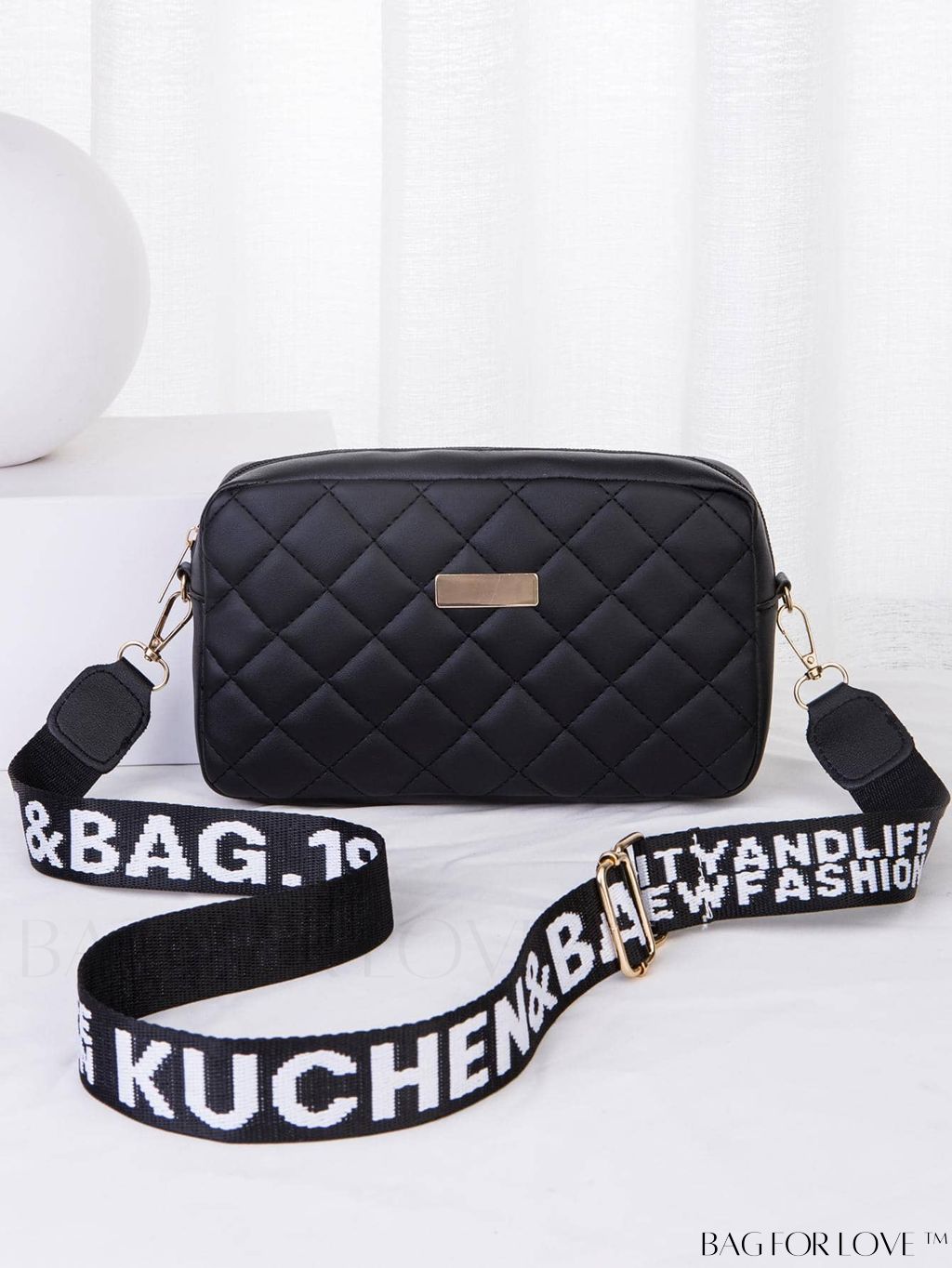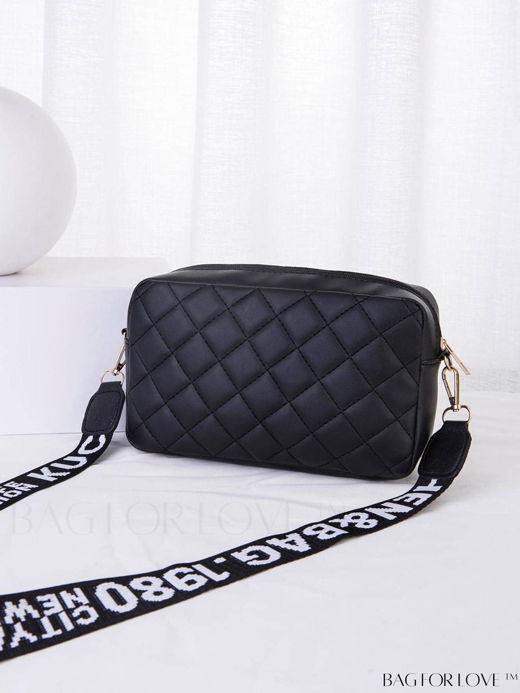 BagForLove - Stylish Square Bag with Adjustable Shoulder Strap – Black Stitching Design
