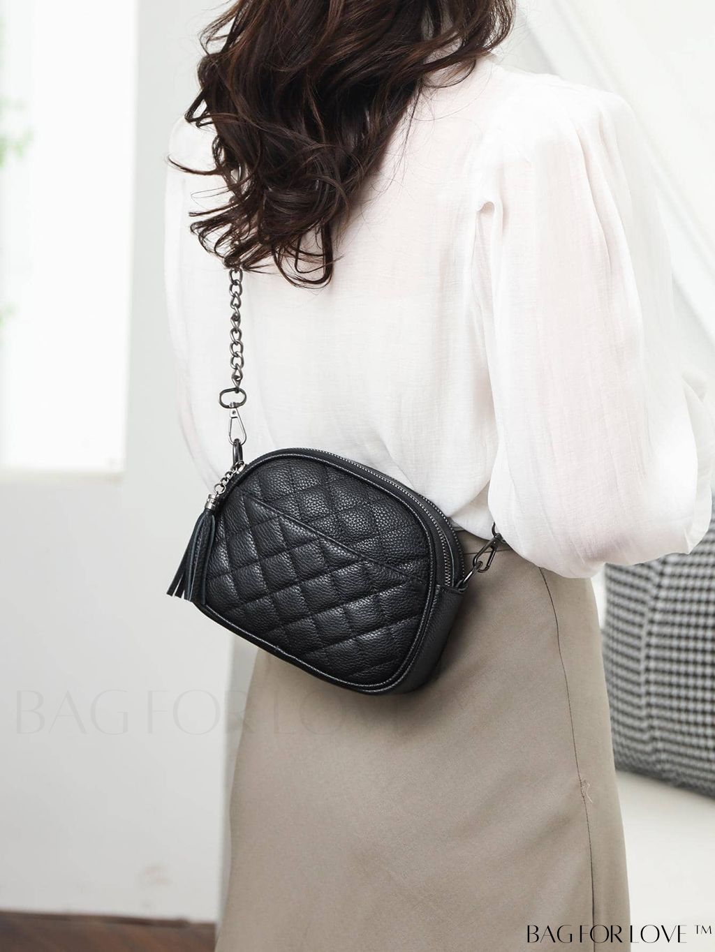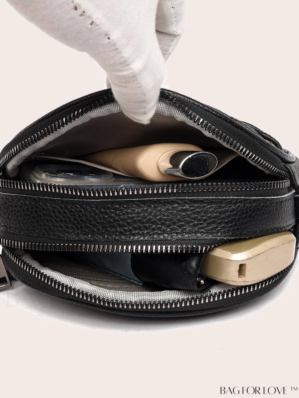 BagForLove - Black PU Zippered Mini Dome Bag with Elegant Design