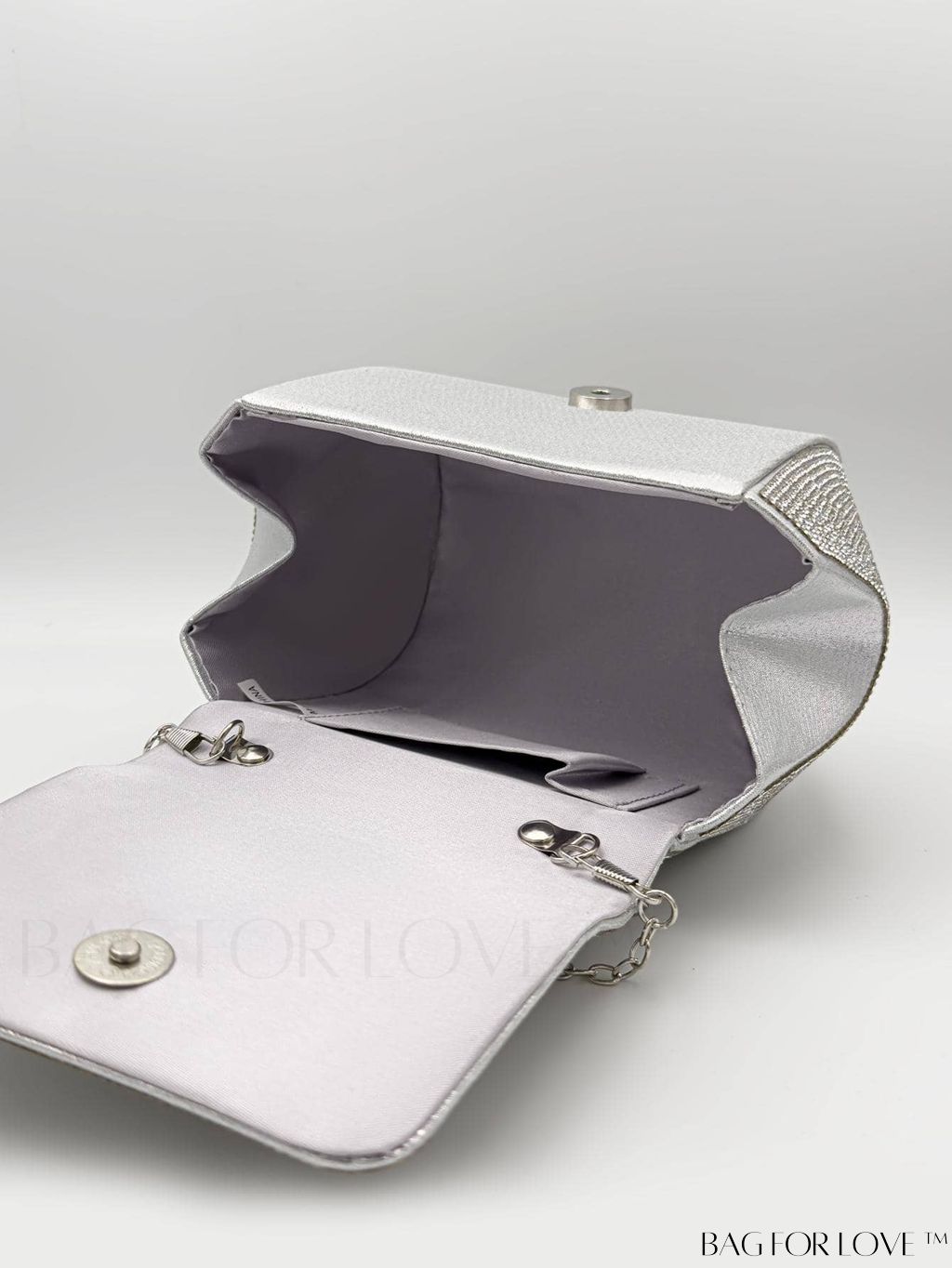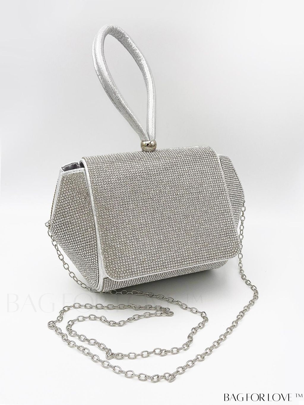 BagForLove - Silver Rhinestone Evening Bag: Sparkly Clutch for Women. Perfect for Parties, Proms, and Weddings.