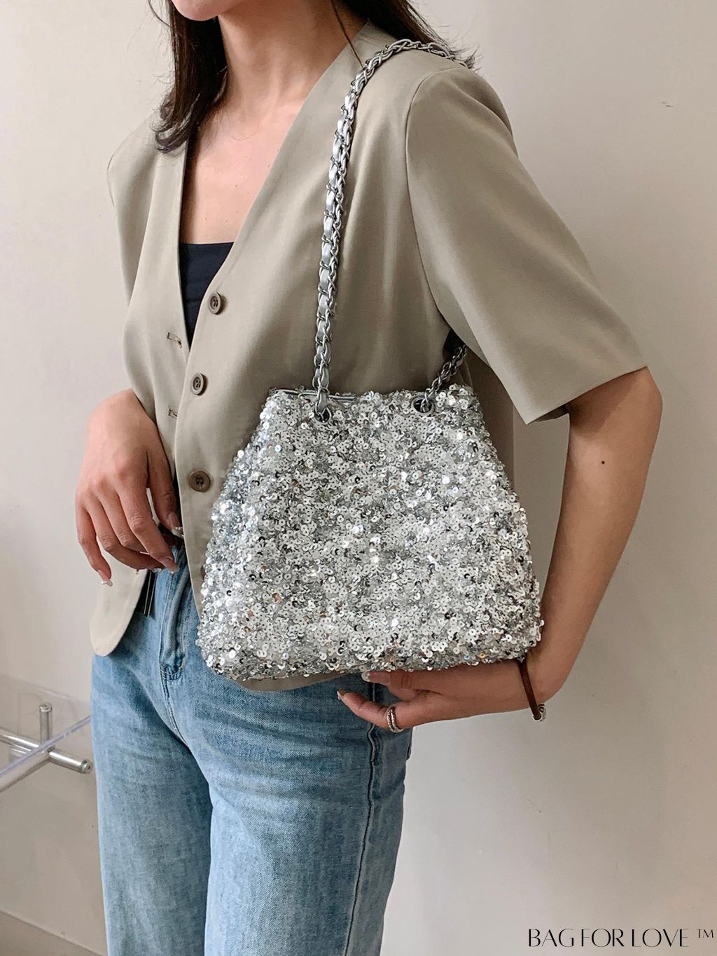 BagForLove - Glam Sequin Bucket Bag with Elegant Chain Strap