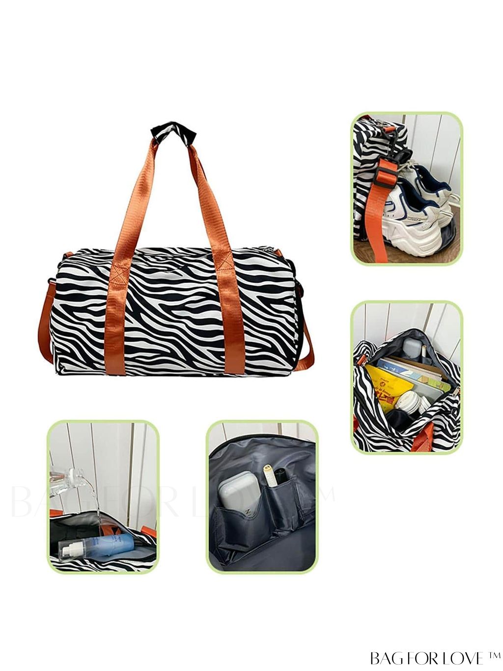 BagForLove - Waterproof Fashion Travel Bag: Zebra Stripe Pattern, Large Capacity with Separate Pockets & Shoe Compartment