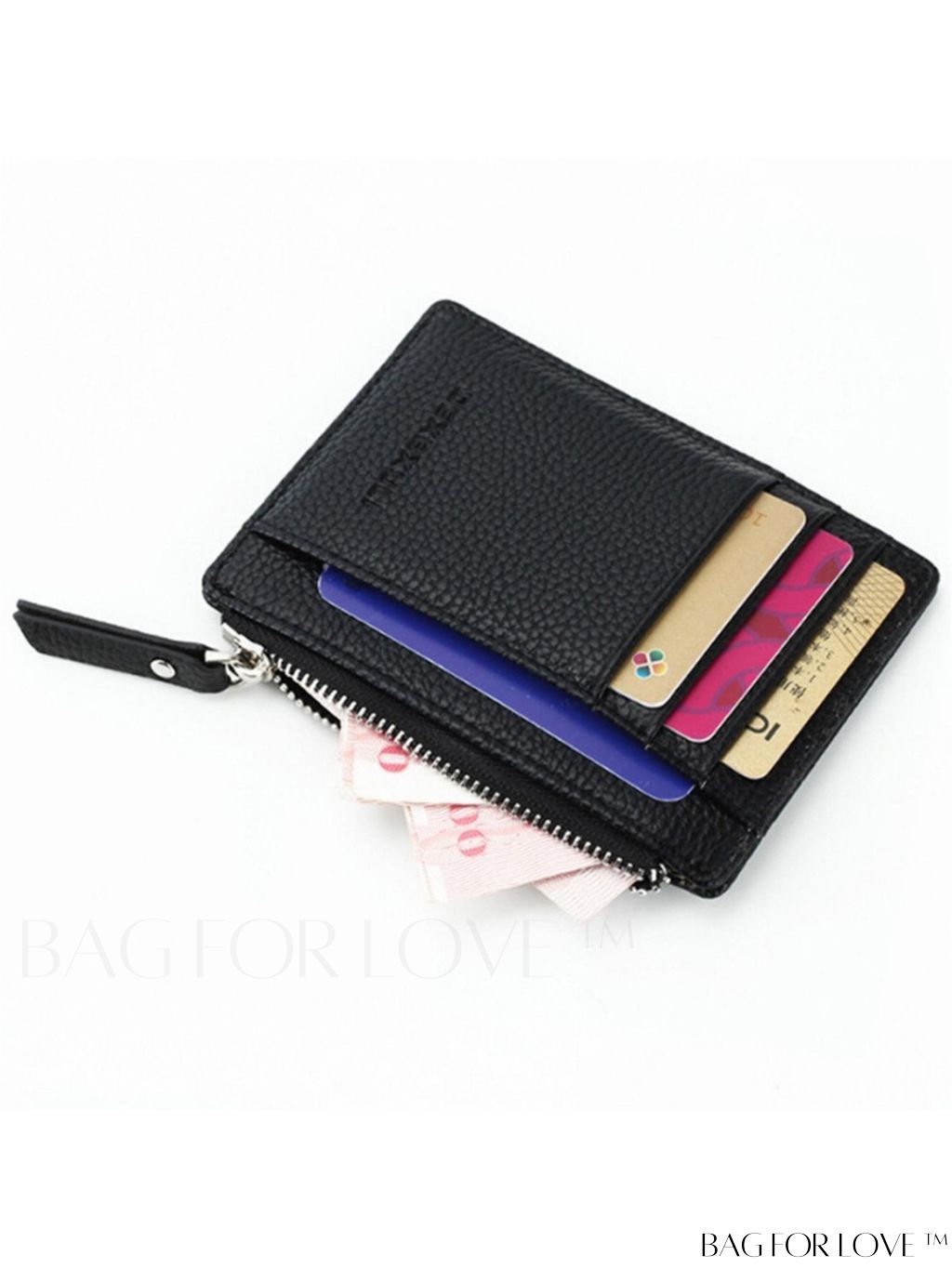 BagForLove - Compact Black Zippered Card Holder with Multifunctional Features
