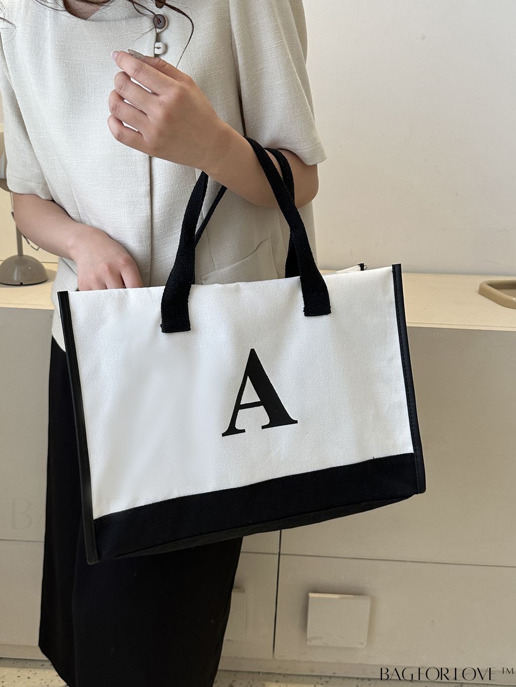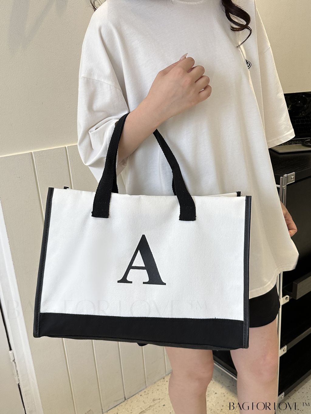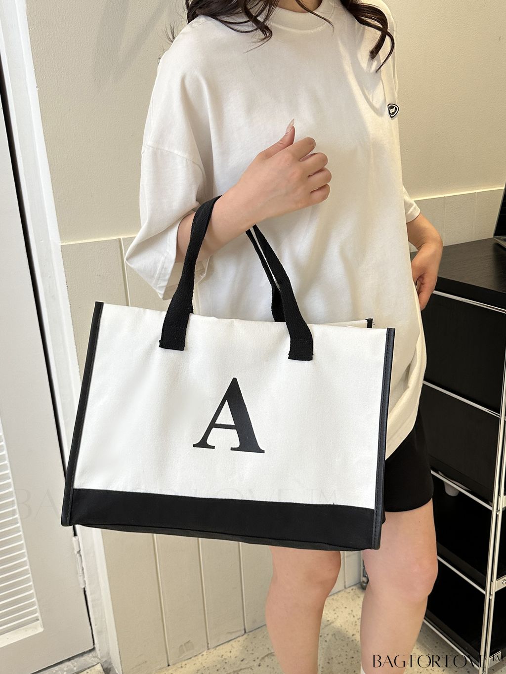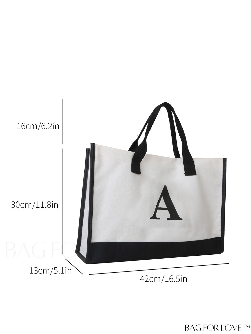BagForLove - Versatile Canvas Tote: Letter Print, Spacious, Fashionable Handbag for Students, Perfect for Travel & School