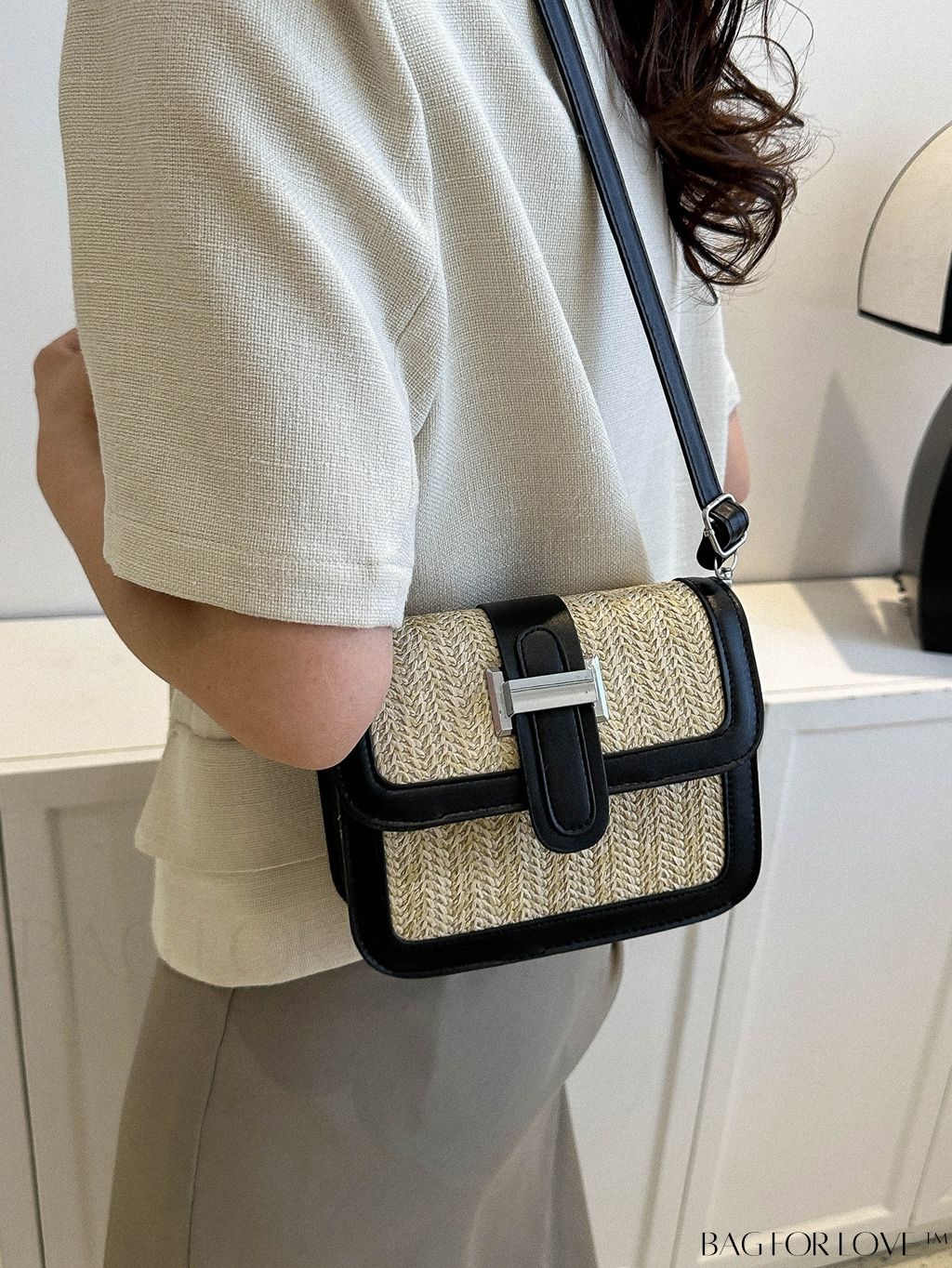 BagForLove - Woven Square Crossbody Bag: Fashionable, Spliced Design