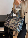 BagForLove - Quilted Top Handle Bag with Camo Print Twilly Scarf Accents