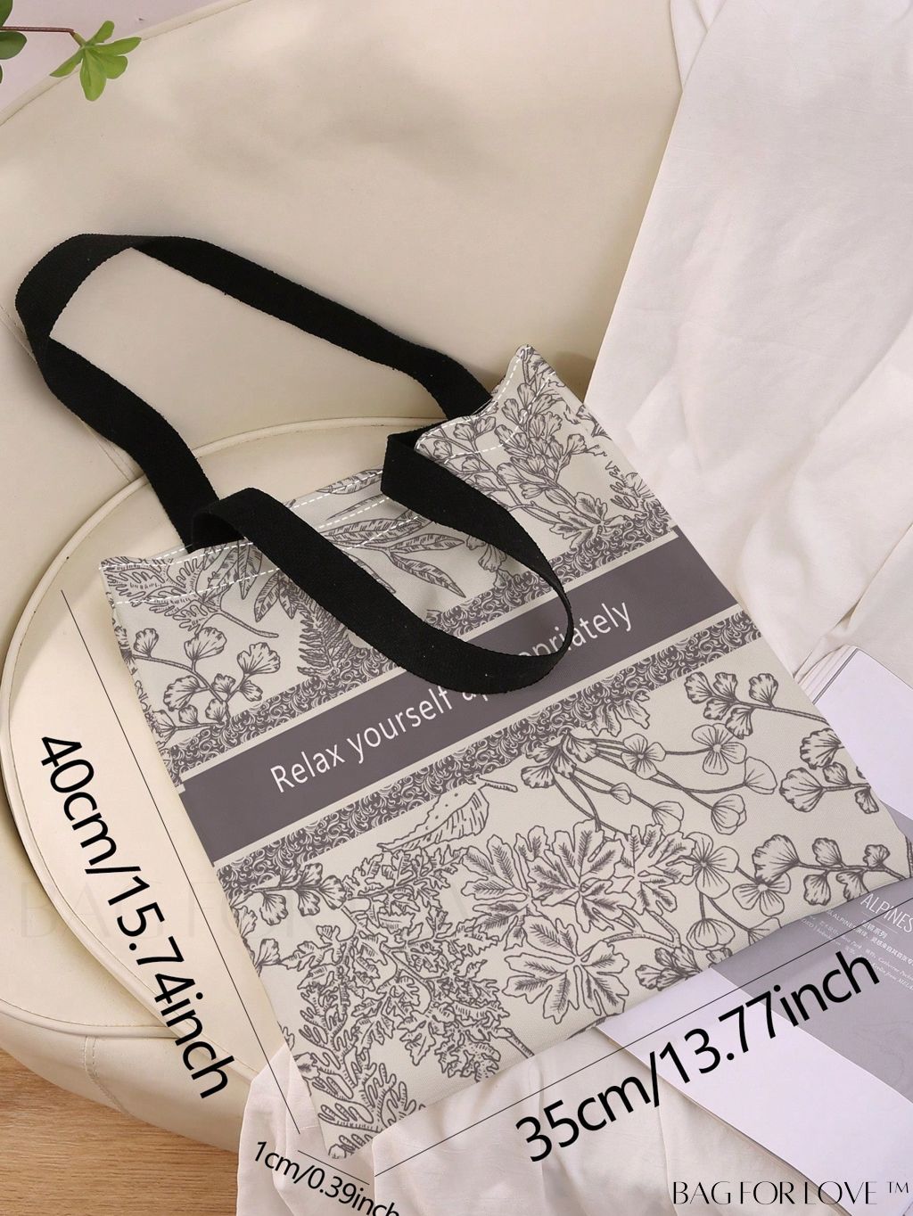 BagForLove - Canvas Shoulder Tote Bag with Leaf & Letter Graphic - Elegant Double Handle