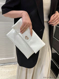 BagForLove - Beige Flap Clutch Bag with Metal Heart Decor, Envelope Design
